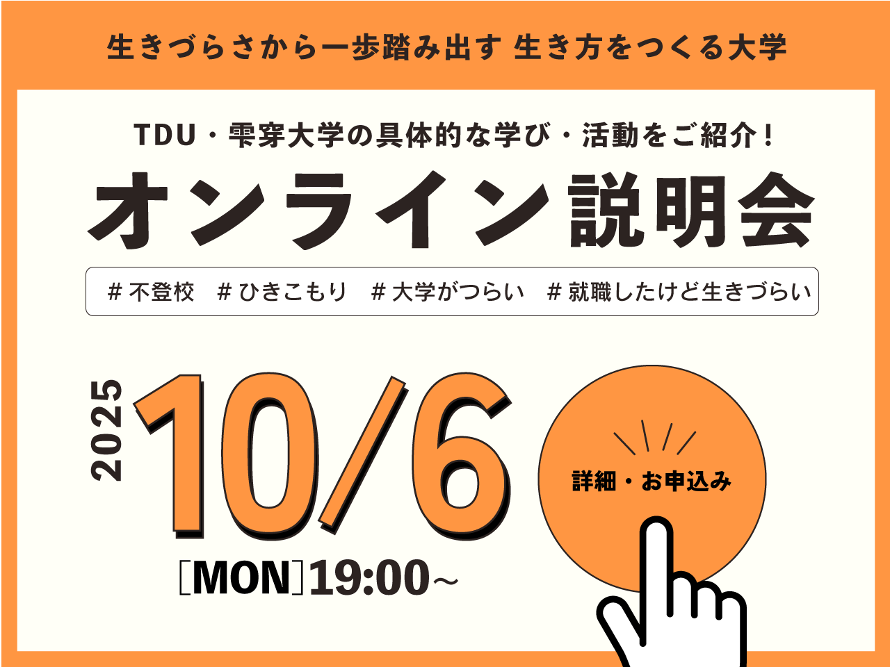 2025年10月6日(月)19時から、TDU・雫穿(てきせん)大学オンライン説明会を開催します!