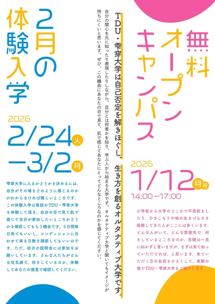 #雫穿大学 #オープンキャンパス #体験入学 #不登校 #大学の不登校 #ひきこもり #オルタナティブ教育